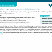 A guided facilitation guide aimed at facilitating a discussion around wellness integration into key organizational identity elements including organizational purpose, mission, vision, values, and behaviors.