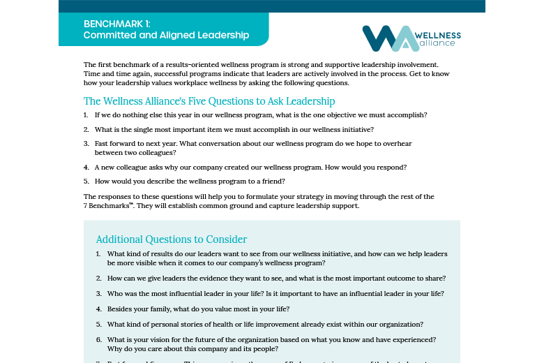 Get to know your company leaders ideas of workplace wellness by asking the suggested questions. Successful programs indicate that leaders are actively in the process, and the responses will help you formulate your strategy moving forward.